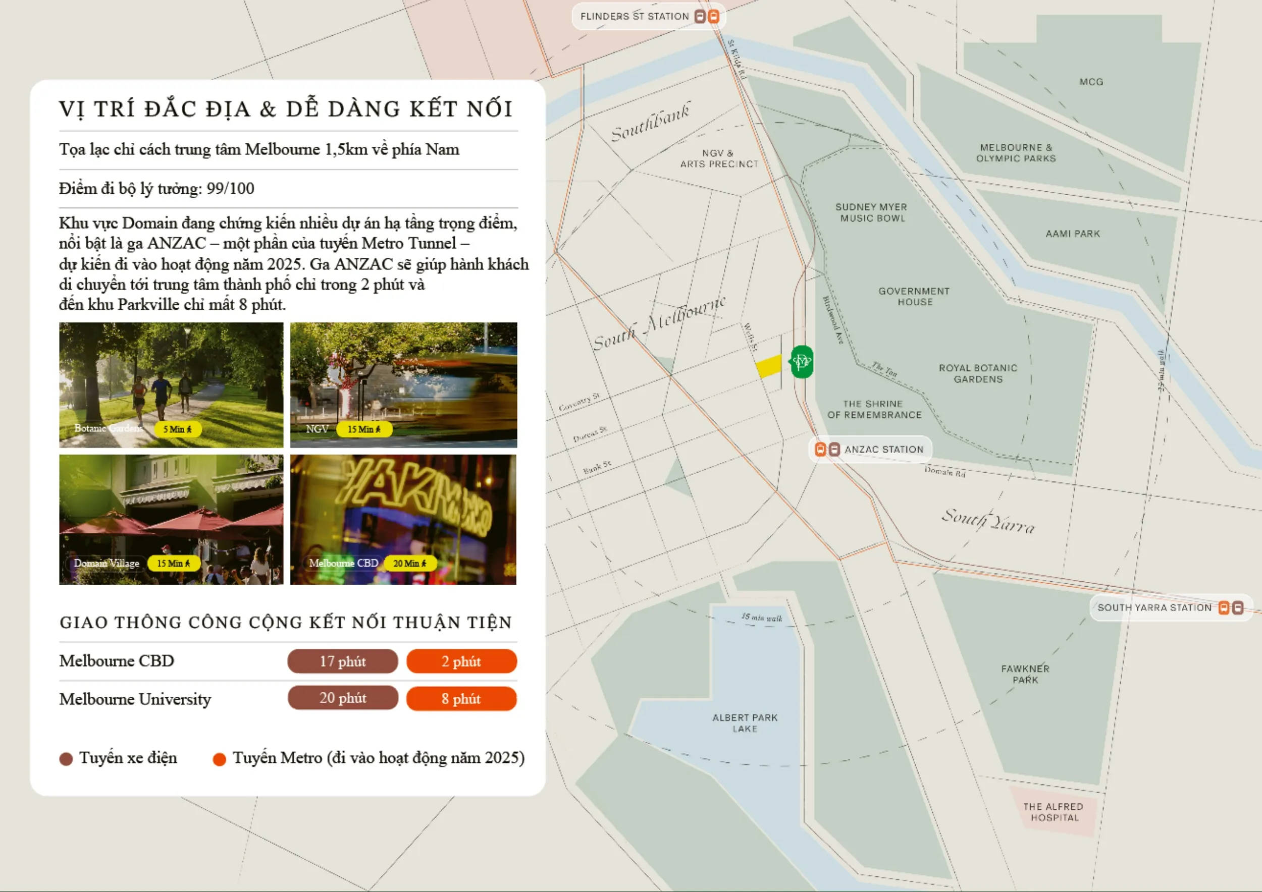 Nằm tại khu Domain Precinct đắt giá của Melbourne và được thiết kế bởi đội ngũ kiến trúc sư danh tiếng Bates Smart, dự án căn hộ cao cấp này sở hữu tầm nhìn trực diện đến Đài Tưởng Niệm Chiến Sĩ (Shrine of Remembrance) và Vườn Bách Thảo Melbourne – hai biểu tượng di sản của thành phố Melbourne.