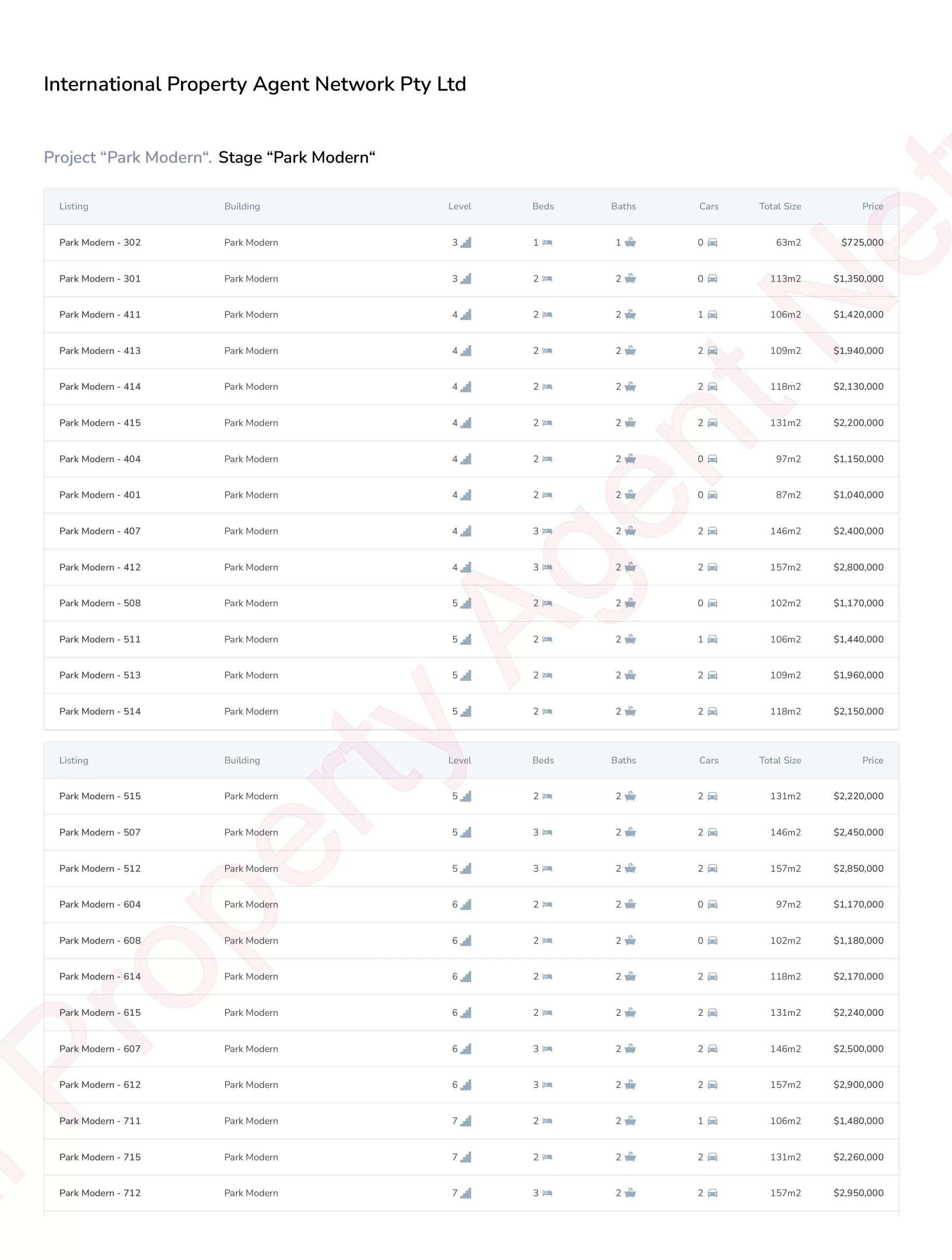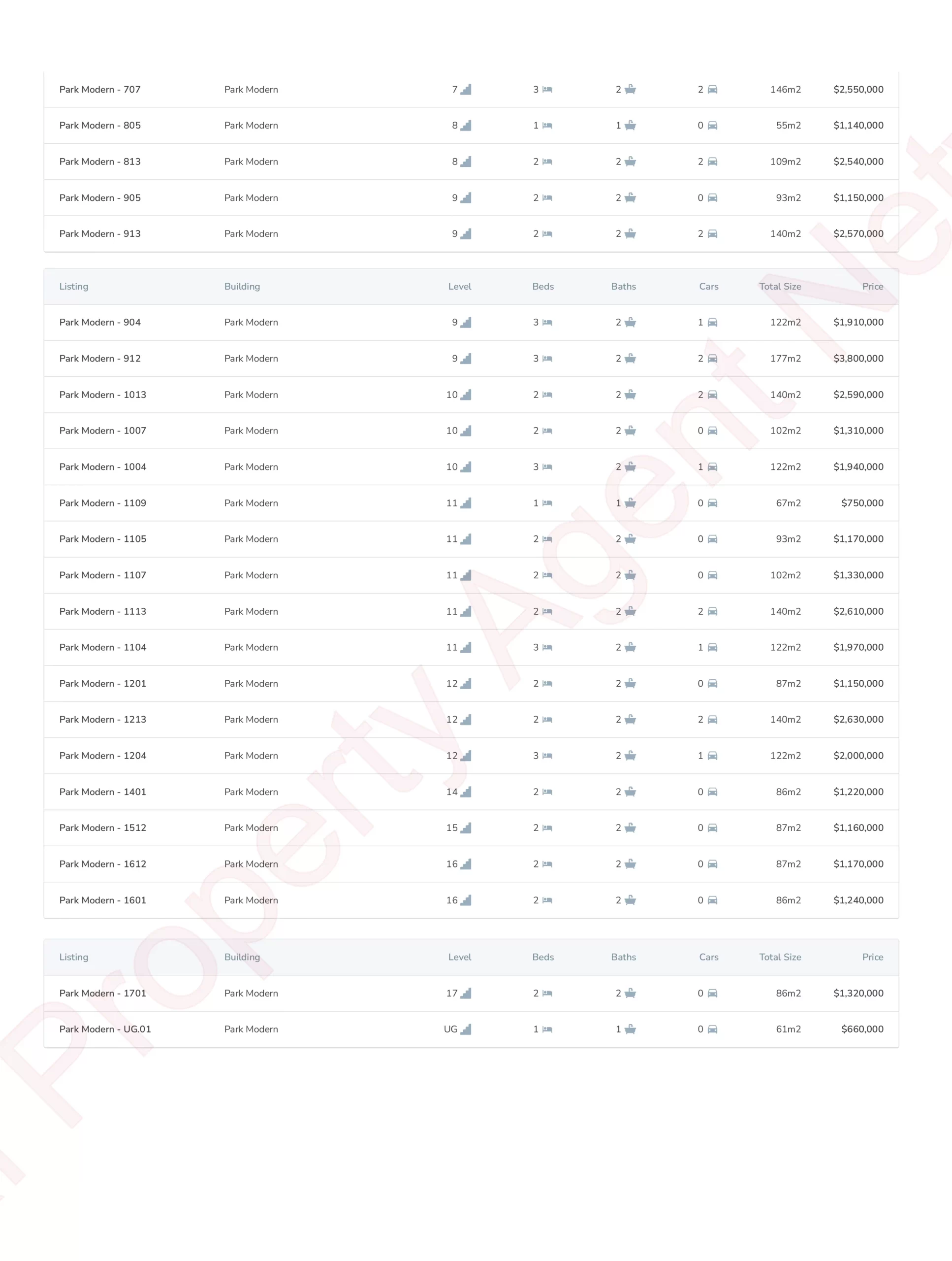 Mặt bằng PARK MODERN